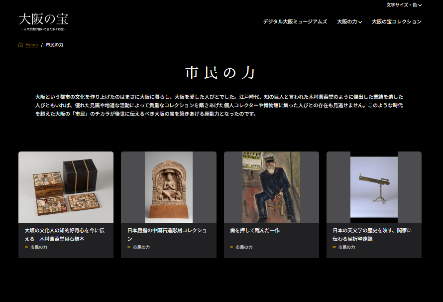 2024年2月20日(火)に、大阪市立美術館・大阪市立自然史博物館・大阪市立東洋陶磁美術館・大阪市立科学館・大阪歴史博物館・大阪中之島美術館の6館が、各館の収蔵品をまとめて公開するウェブサイト「デジタル大阪ミュージアムズ」をオープンしました。